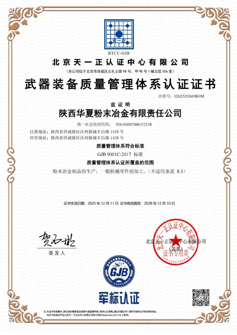 為進(jìn)一步完善華夏公司質(zhì)量管理體系,拓展高端裝備領(lǐng)域市場(chǎng),提升核心競(jìng)爭(zhēng)力,公司自去年導(dǎo)入GJB 9001C-2017武器裝備質(zhì)量管理體系標(biāo)準(zhǔn)工作,經(jīng)過(guò)多輪嚴(yán)格的文件審核、現(xiàn)場(chǎng)審核等環(huán)節(jié),成功通過(guò)認(rèn)證審核并正式取得武器裝備質(zhì)量管理體系認(rèn)證證書!