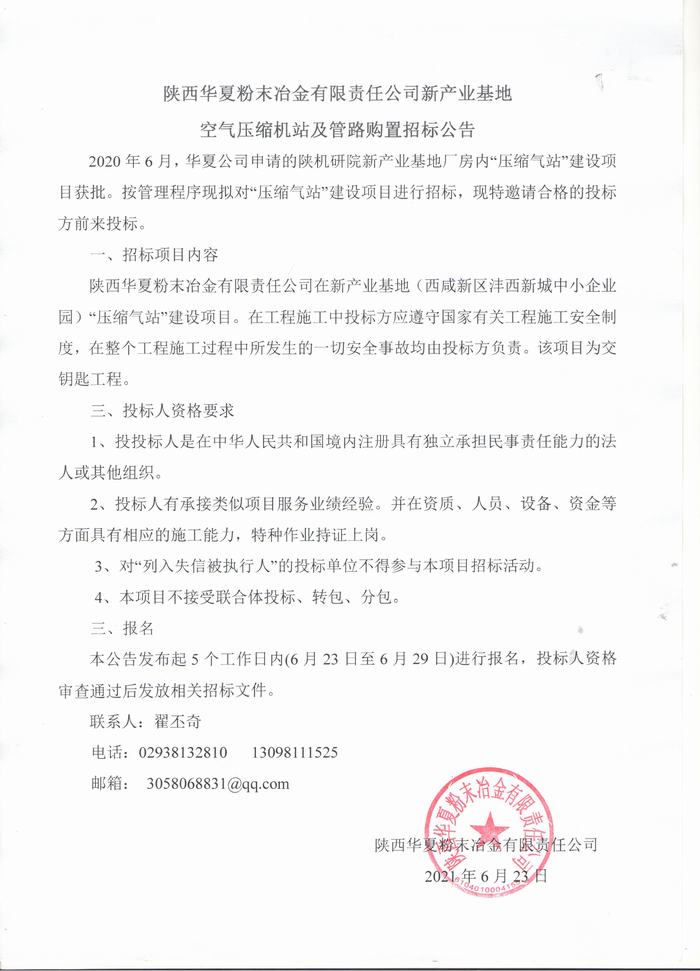空氣壓縮機(jī)站及管路購置招標(biāo)公告