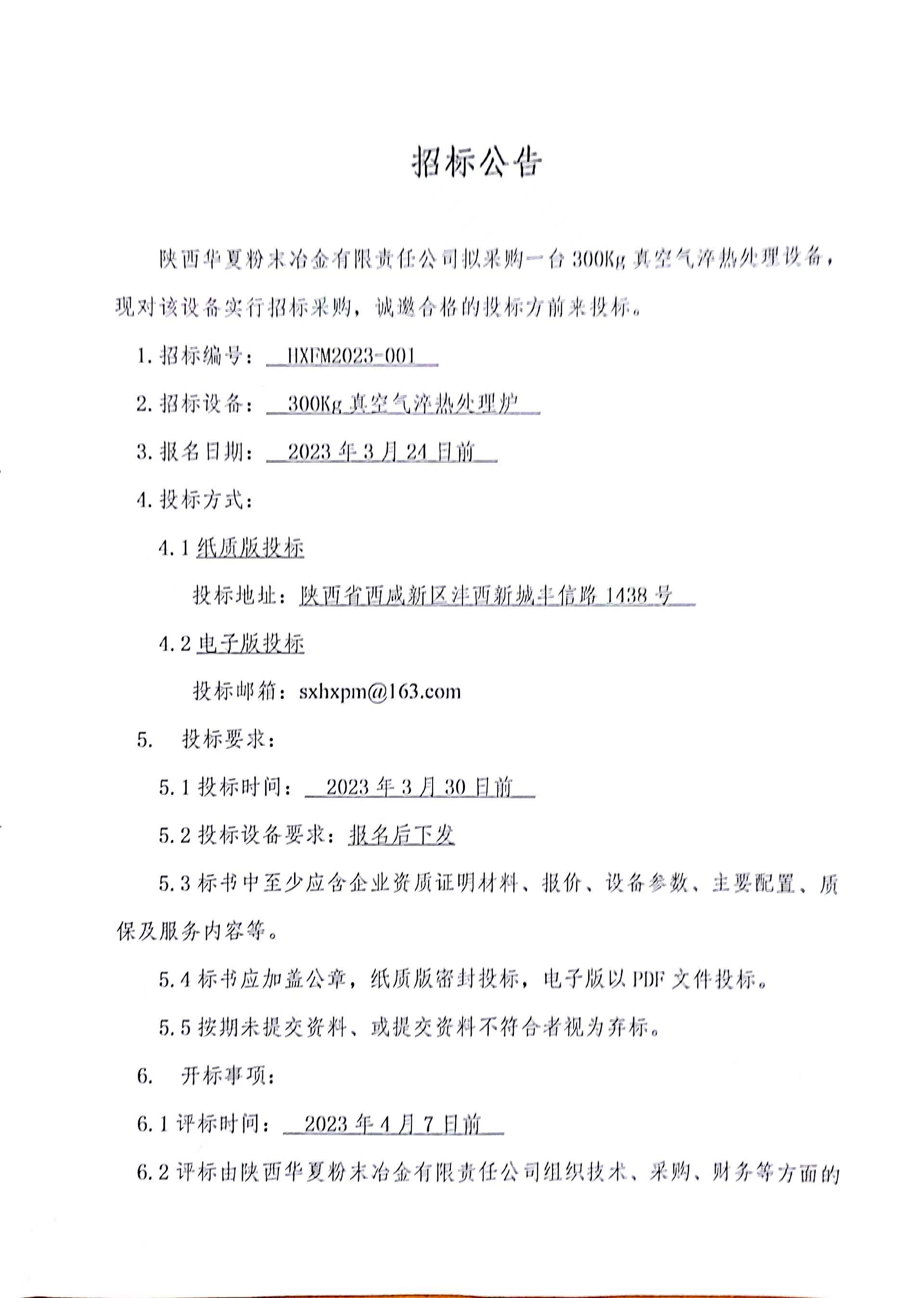 陜西華夏粉末冶金有限責任公司廢舊設備處置公告